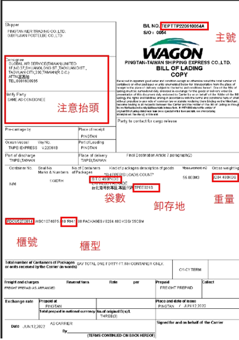 提單、擔保切結、電放切結需歸檔