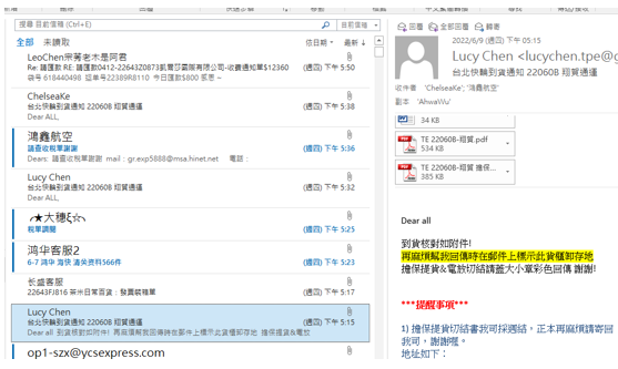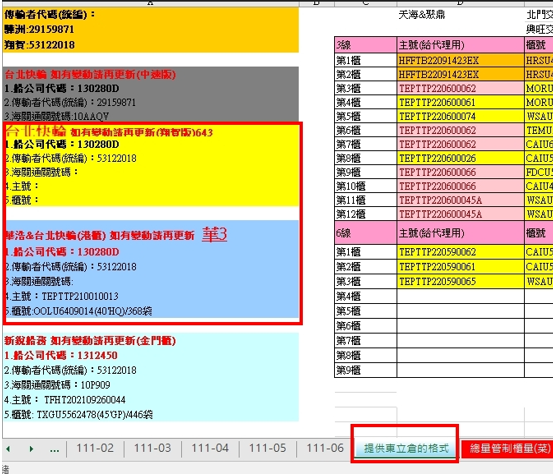 再來就是收船公司提單,台北快輪會發信箱,華三的一樣在群組