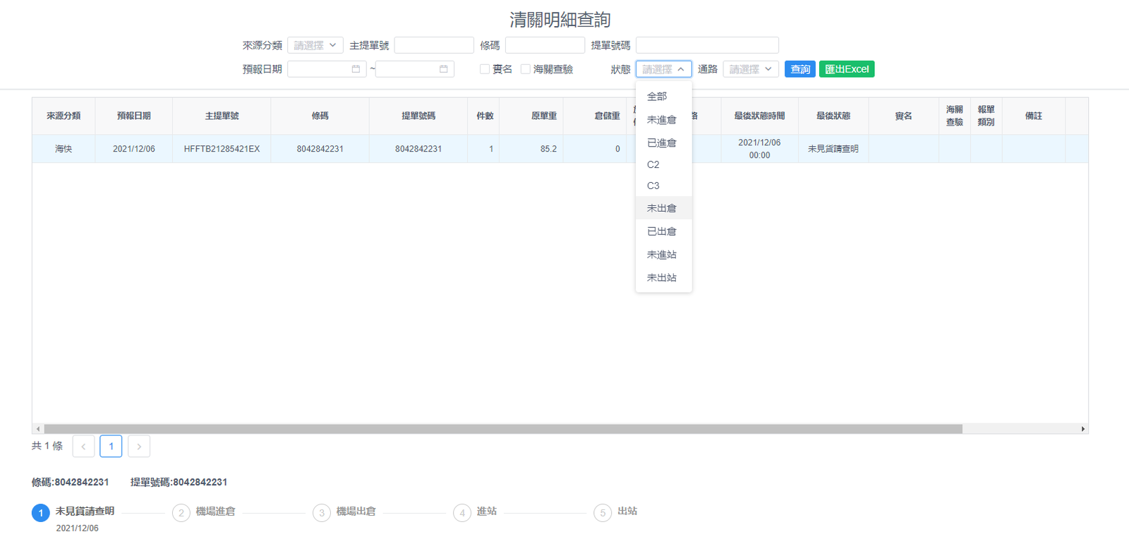 報關 – 查分提單號貨態