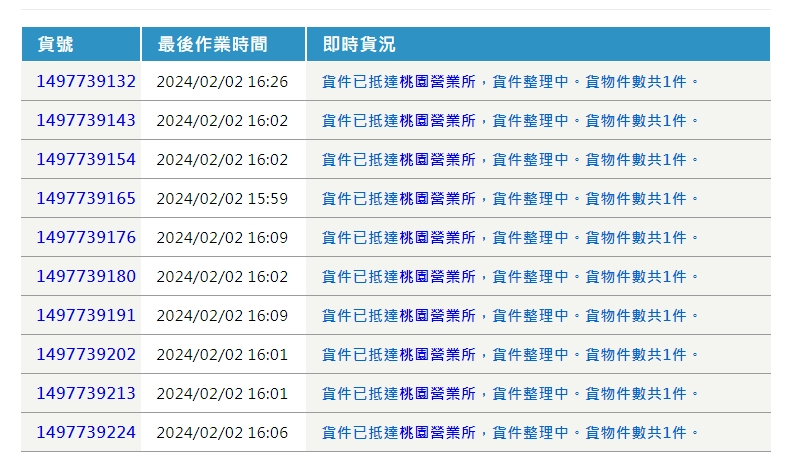 24643L7754確認沒有收到貨物請在協助找貨謝謝