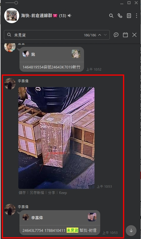 - 如派件未點到跟國外要貨物外觀照回報前倉阿銘協助找貨