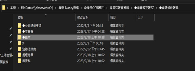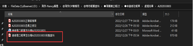 在 O:\海快-Nancy輝進\@海快OP轉檔用\@等待報關資料\●海關轉正報ZZ\●申請修改報單