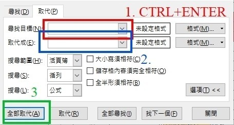 ②CTRL+F取代空白