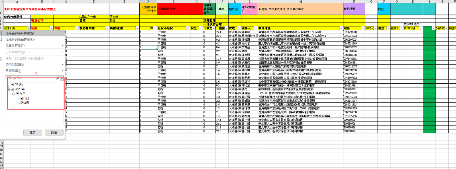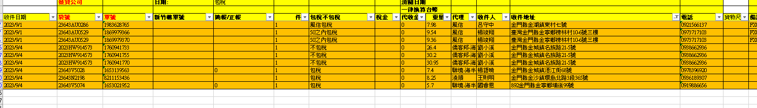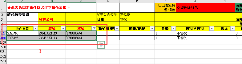 - 日期打上當天日期 ,複製格式 點選前一天的派件,