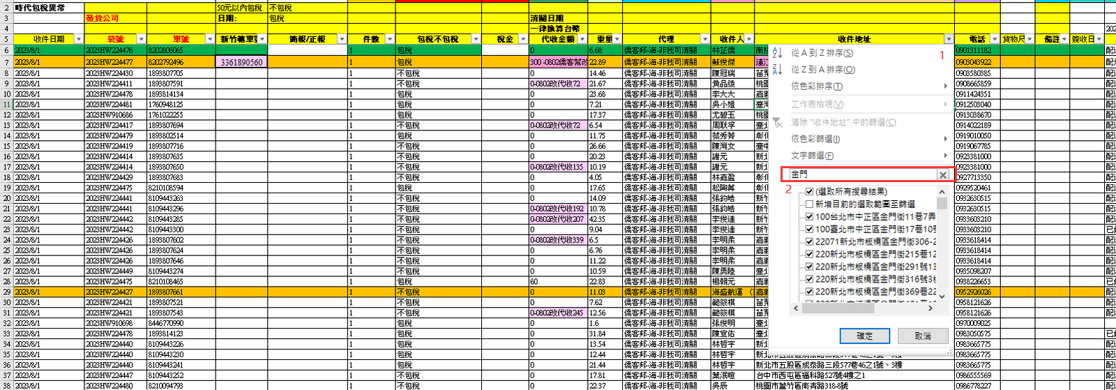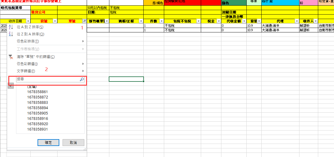 - 篩選出外島地址後 底色刷上橘色