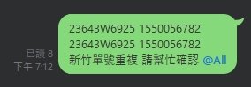 - 將日期 袋號 單號 複製下來 貼至 群組標註所有人 @All 通知早班客服人員協助處理
