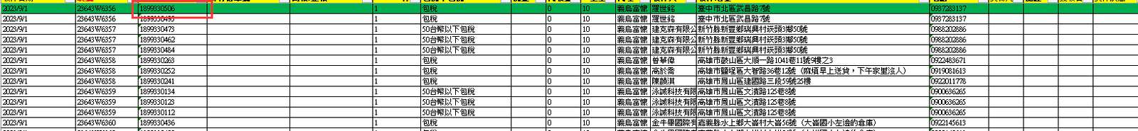 格式複製完 點選第一筆資料 底色刷上綠色 - 其他的格式複製貼上後 確認代收款金額 跟 件數是否正確