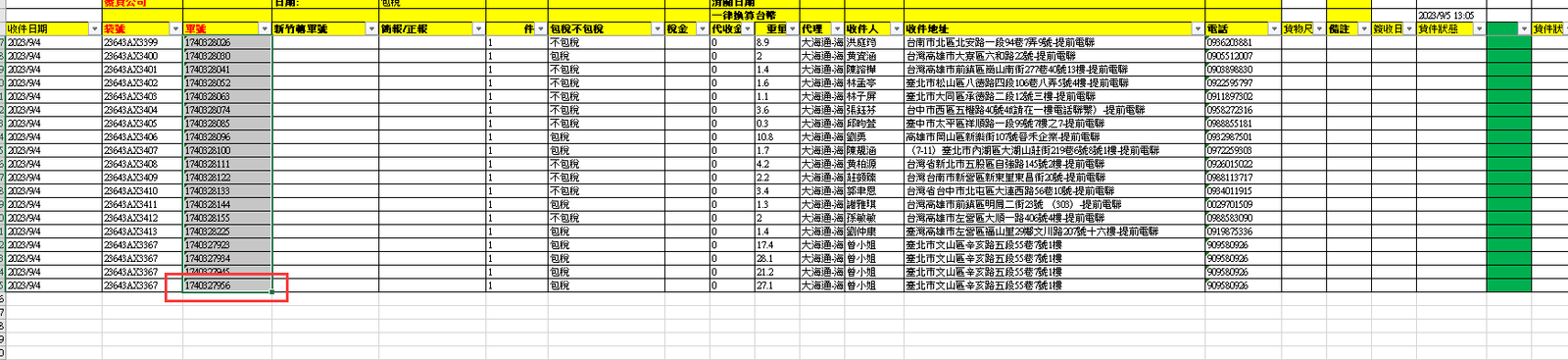 - 到等待報關資料點開要貼的派件資料 EXCEL 檔,複製出派件 (2),