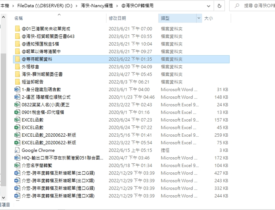 O:\海快-Nancy輝進\@海快OP轉檔用\@等待報關資料