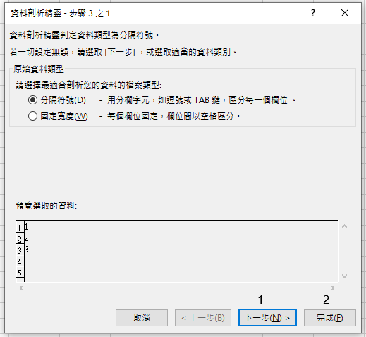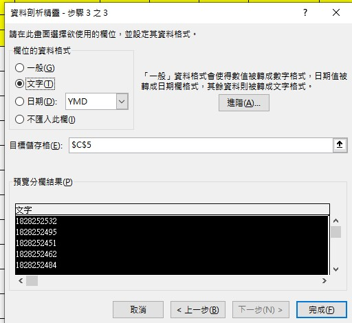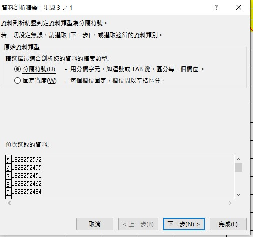 若單號沒有綠點點,使用資料剖析 (下一步,下一步,選擇文字 下一步)